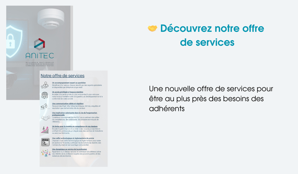Née de la fusion de 2 entités, SVDI et S2ICF, ANITEC est la première organisation professionnelle française regroupant les entreprises de services expertes à dominante technique dans : la sécurité incendie, la sûreté, les TIC (Technologies Information Communication) et la domotique au sens large du terme.